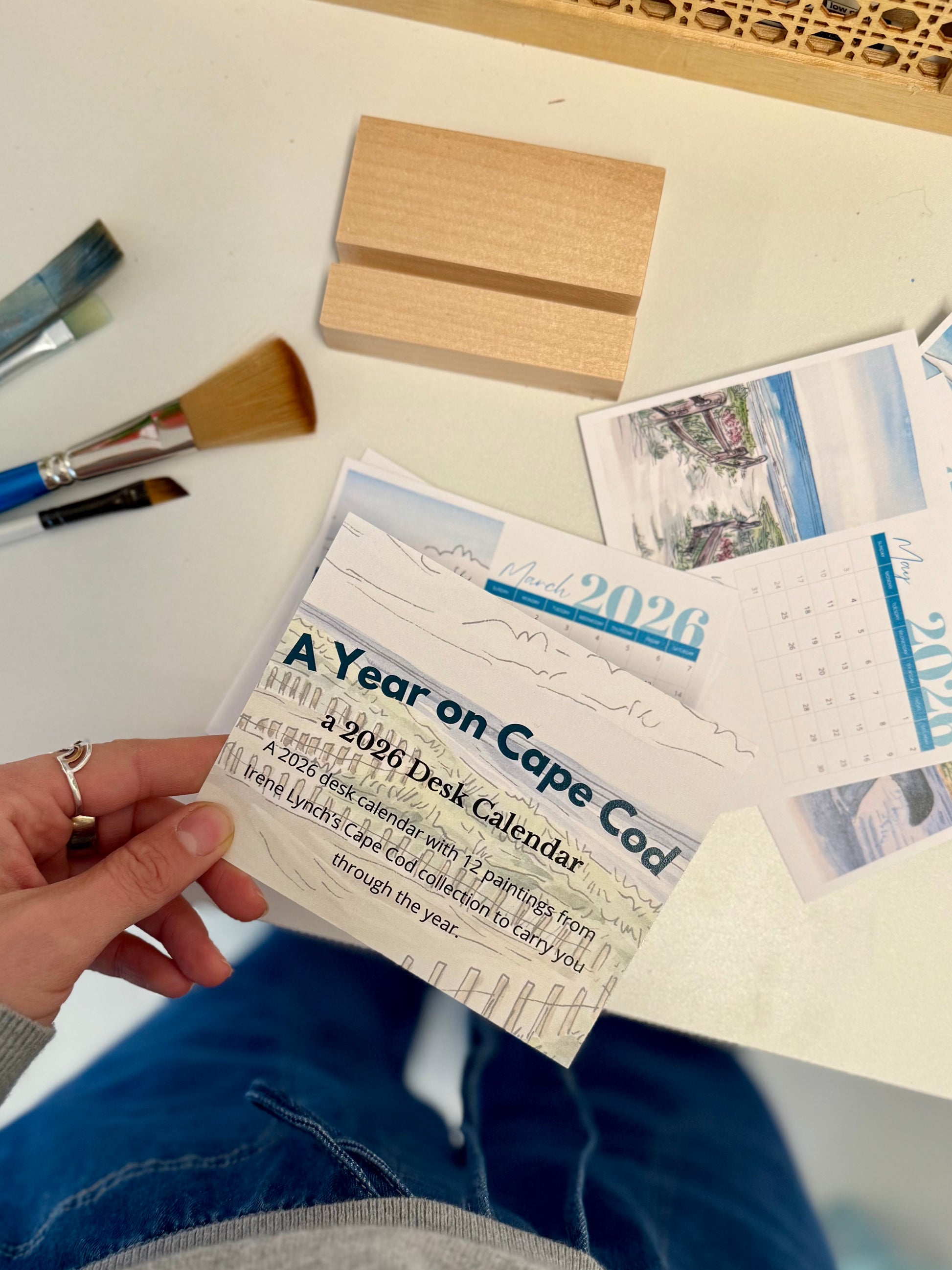 2026 Cape Cod Desk Calendar with Wooden Stand — 12 Mini Watercolors by Irene Lynch