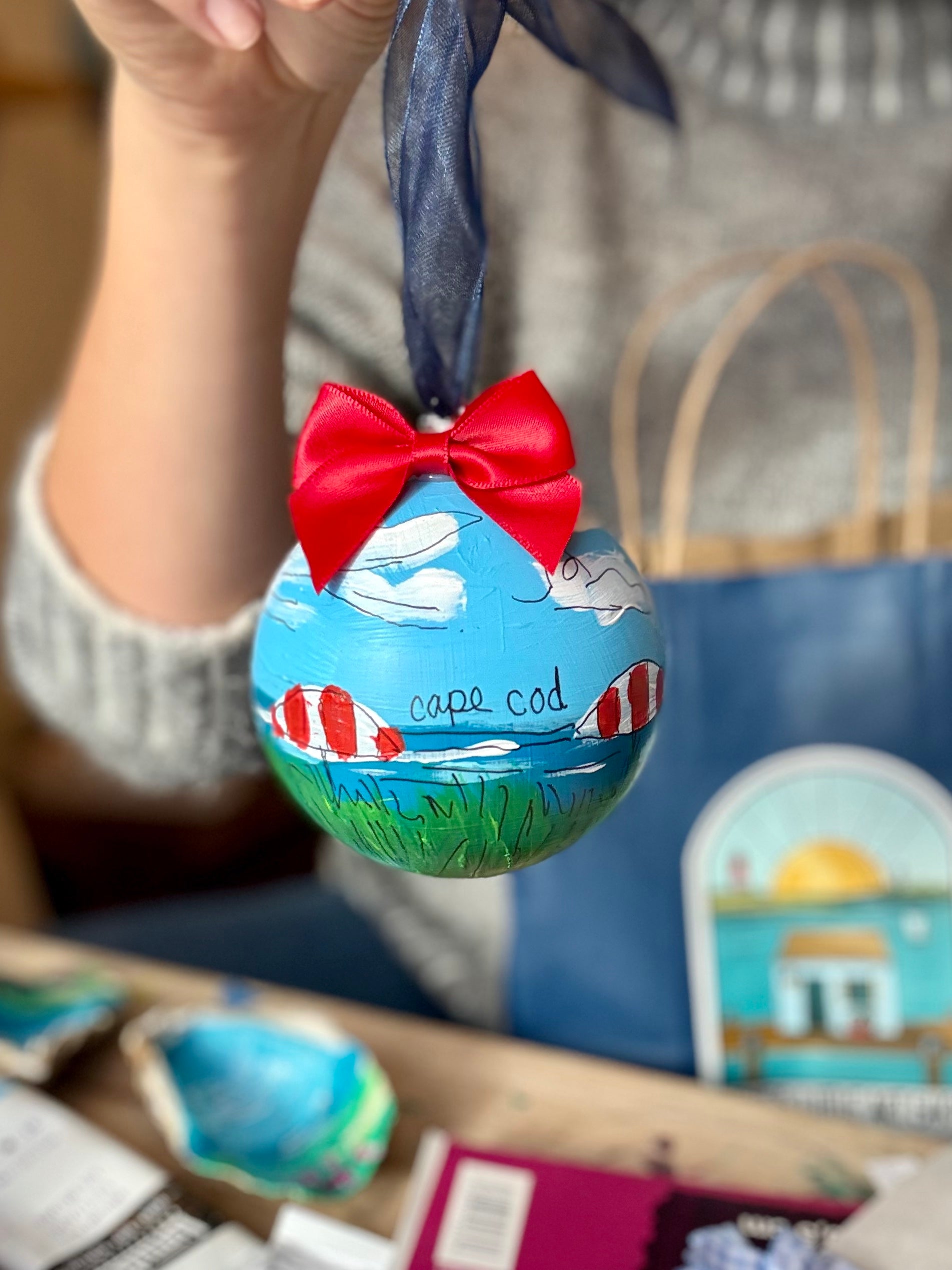 Summer’s Day on the Cape Bauble — a fully hand-painted, shatter-proof ornament capturing the quiet beauty of a Cape Cod summer.