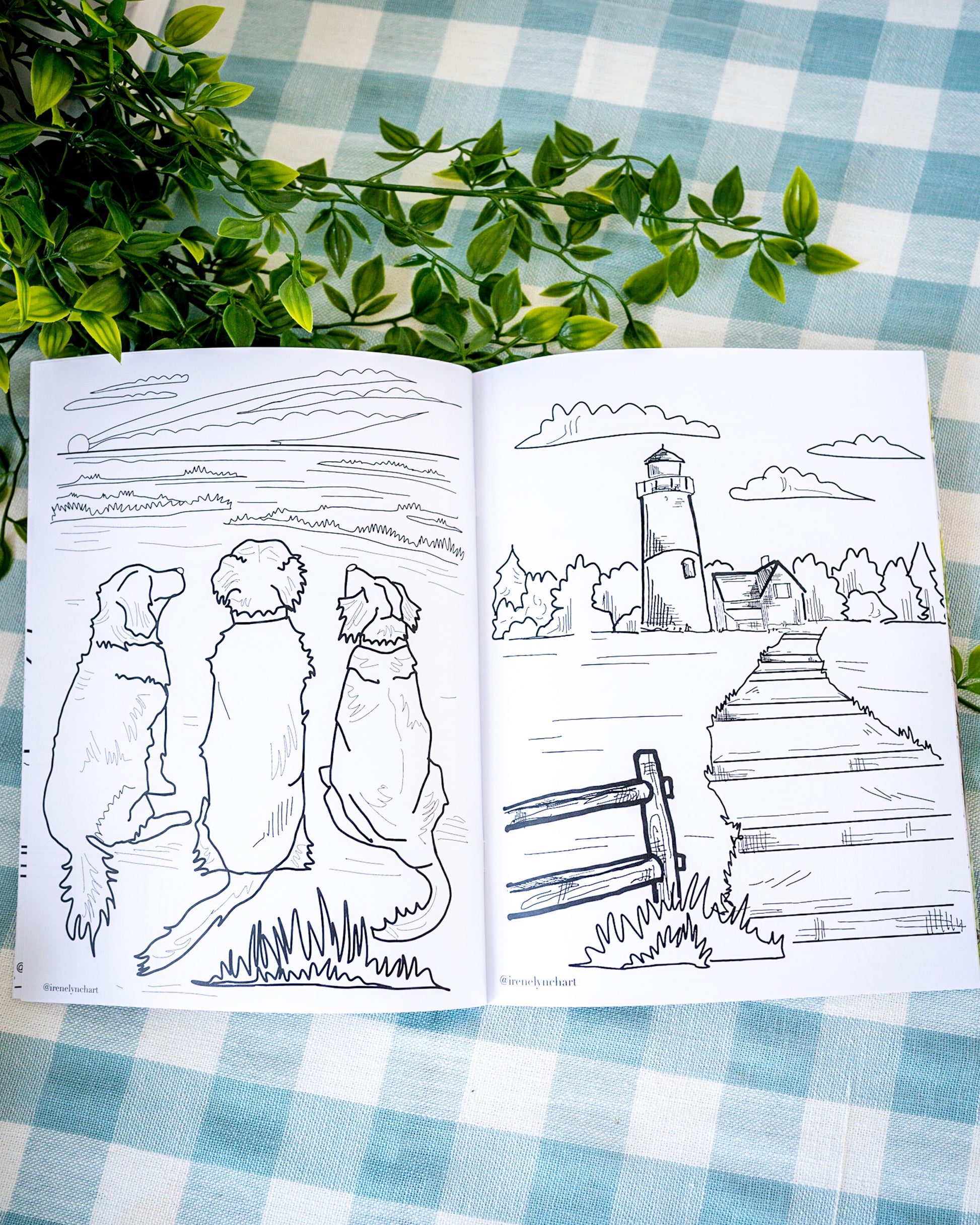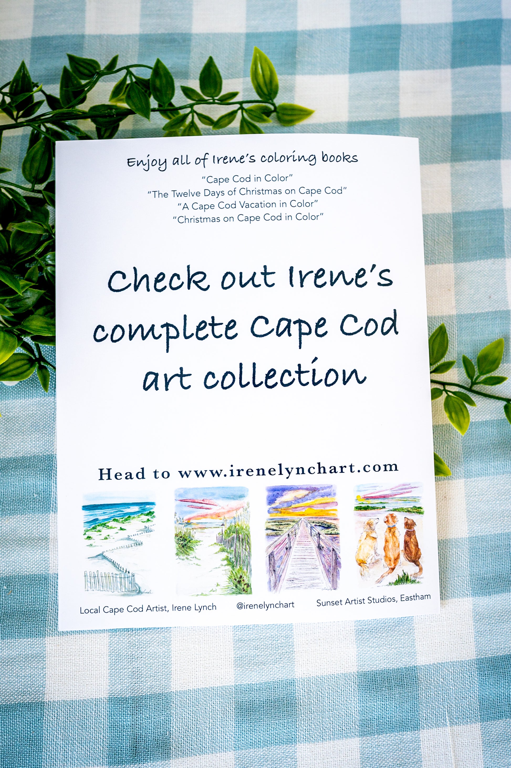 Enjoy my best selling original coloring book, copyrighted June 2021! Bring Cape Cod to life with 23 line drawings fit to color by all ages. My drawings are derived from watercolor paintings in my collection, with the addition of some MUST Cape Cod locations. I have successfully sold these over the last two years at in person events and consistently online. It's heart warming to see people of all ages find inspiration and excitement through my drawings.