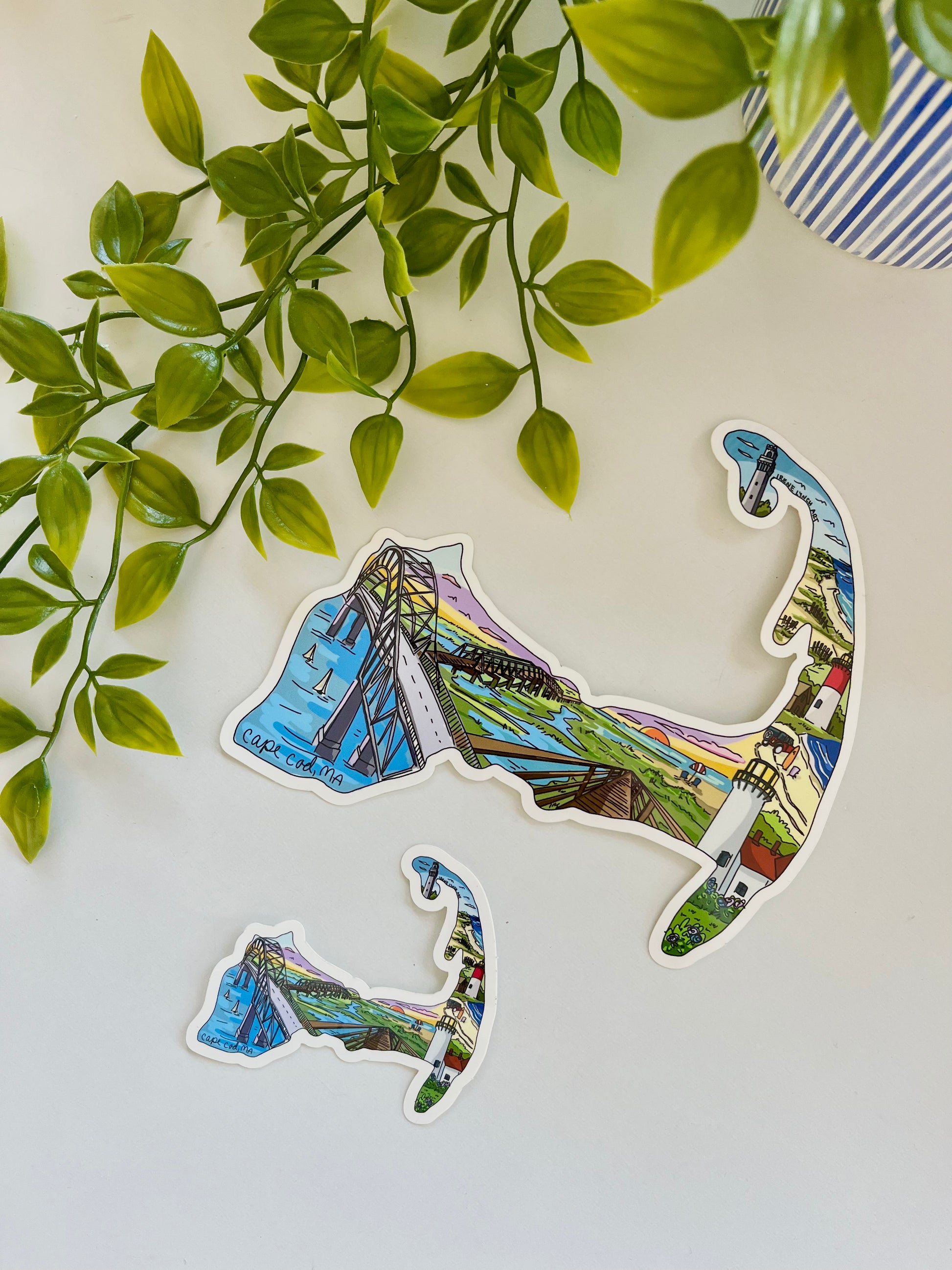 Bring the charm of Cape Cod with you wherever you go with this beautifully illustrated Cape Cod Map Sticker! Designed by local Cape Cod artist Irene Lynch, this durable vinyl sticker features iconic landmarks from Provincetown to the Cape Cod Canal, capturing the heart of the Cape in one coastal-inspired design.