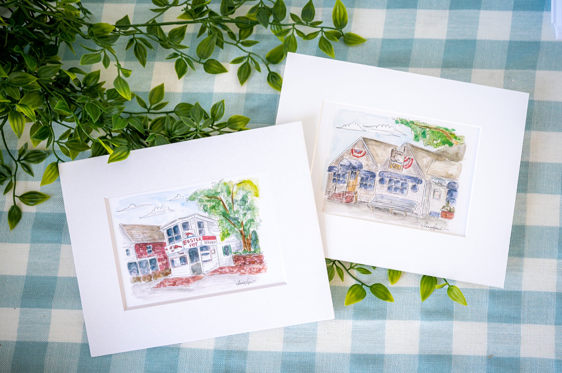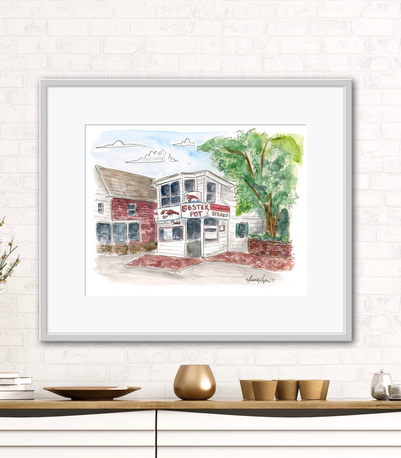 Original watercolor and ink illustration of The Lobster Pot Restaurant