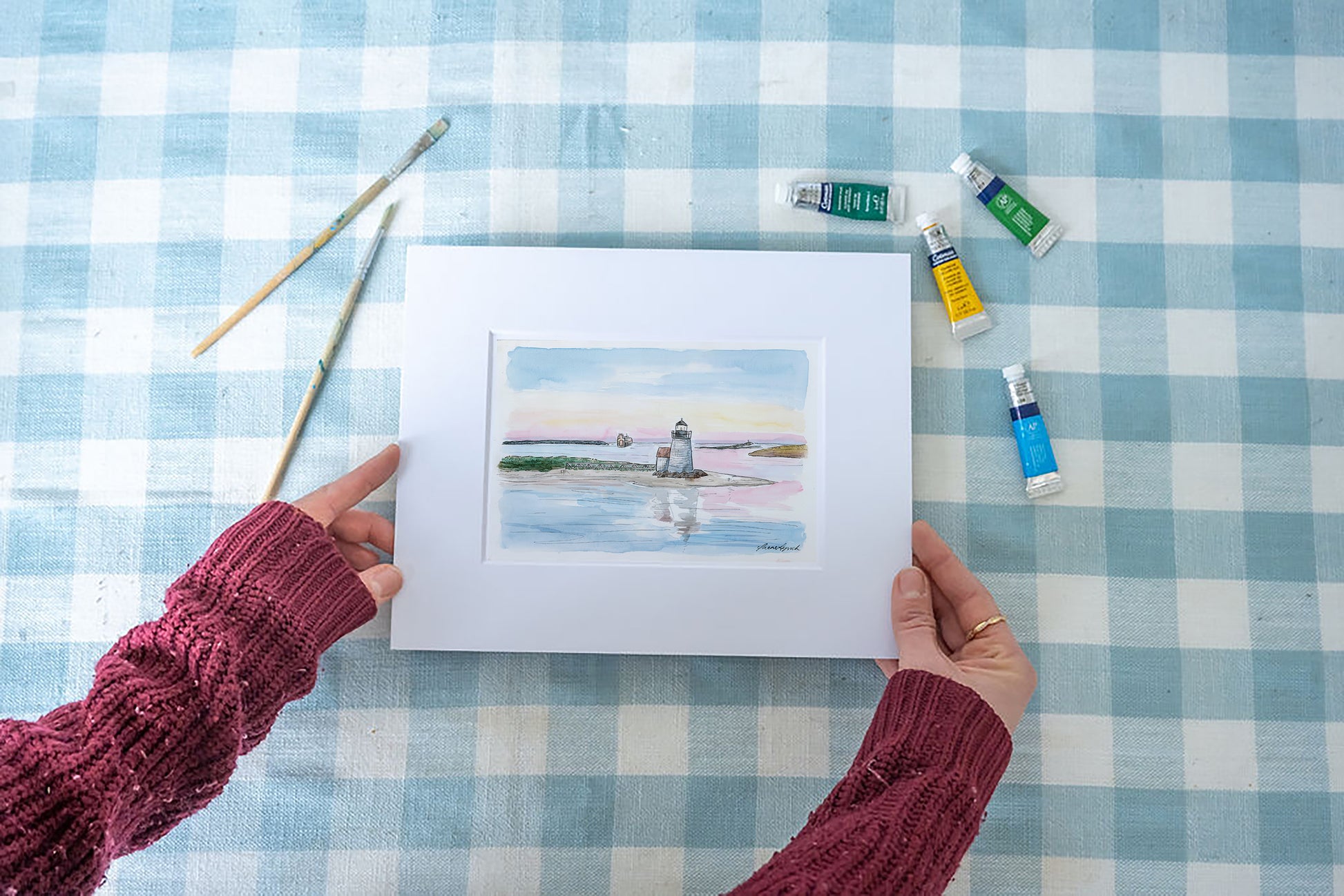 Brant Point at Sunset Art Print – Nantucket Watercolor Coastal Wall Art