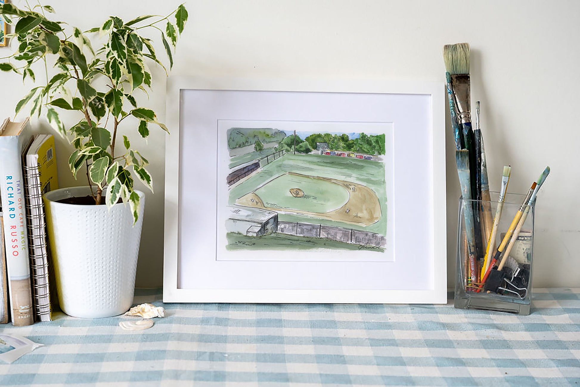 Eldridge Parkway Baseball Field Art Print – Orleans Cape Cod Watercolor Sports Wall Art
