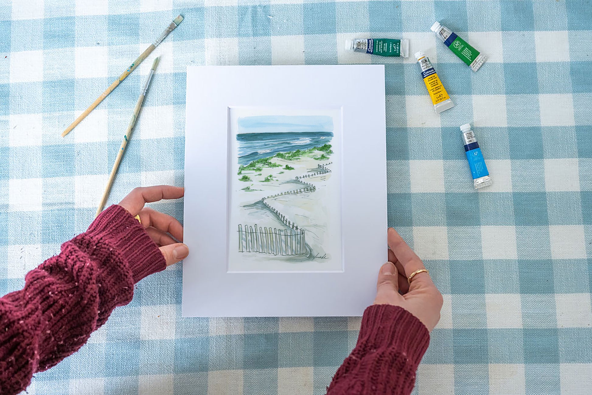 Bring the beauty of Orleans into your home with this watercolor and ink art print, painted by Irene Lynch, featuring Nauset Beach South. One of Cape Cod’s most beloved public beaches, Nauset is known for its sweeping dunes, rolling waves, and miles of sandy shoreline. This piece captures the untamed beauty of the Outer Cape, evoking the sound of crashing surf and the carefree joy of summer days spent by the ocean. Perfect for Cape Cod lovers, surfers, vacationers, or anyone who treasures New England’s coastal landscapes. A thoughtful gift for Orleans locals, beach house owners, or those who dream of Cape Cod summers.