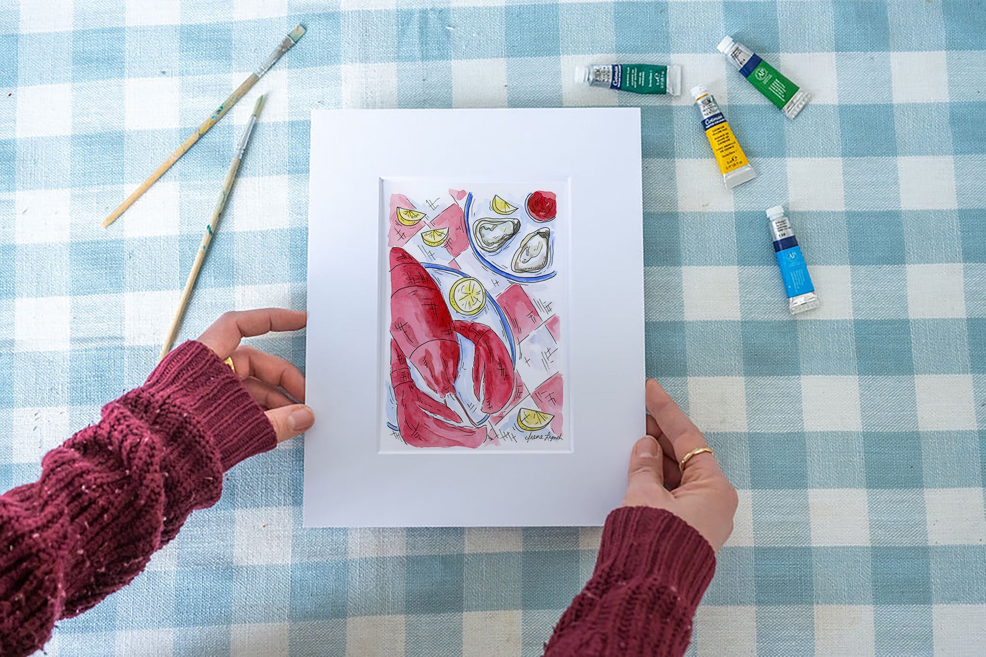 Cape Cod Lobster Dinner Art Print – Coastal Watercolor Seafood Wall Art